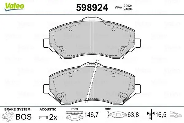 Гальмівні колодки, дискове гальмо (набір) Valeo 598924 Dodge Journey, Jeep Wrangler, Fiat Freemont, Jeep Cherokee, Compass, Chrysler Voyager, Dodge Nitro